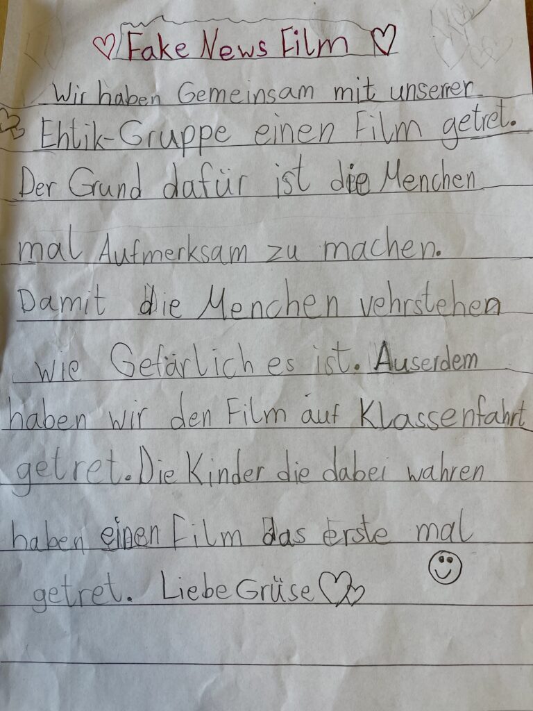 Die Klasse 4a hat sich Ende 2025 mit Fakenews und deren Gefahren beschäftigt und einen Film zur Aufklärung gedreht.