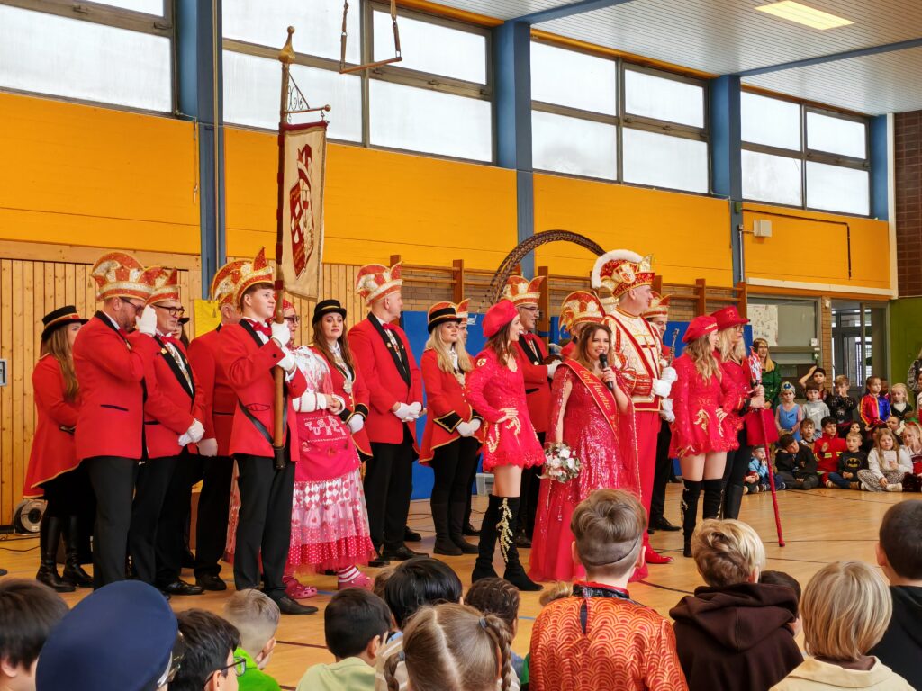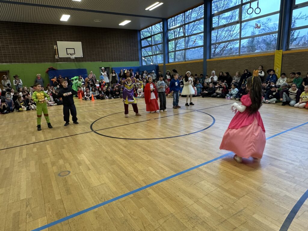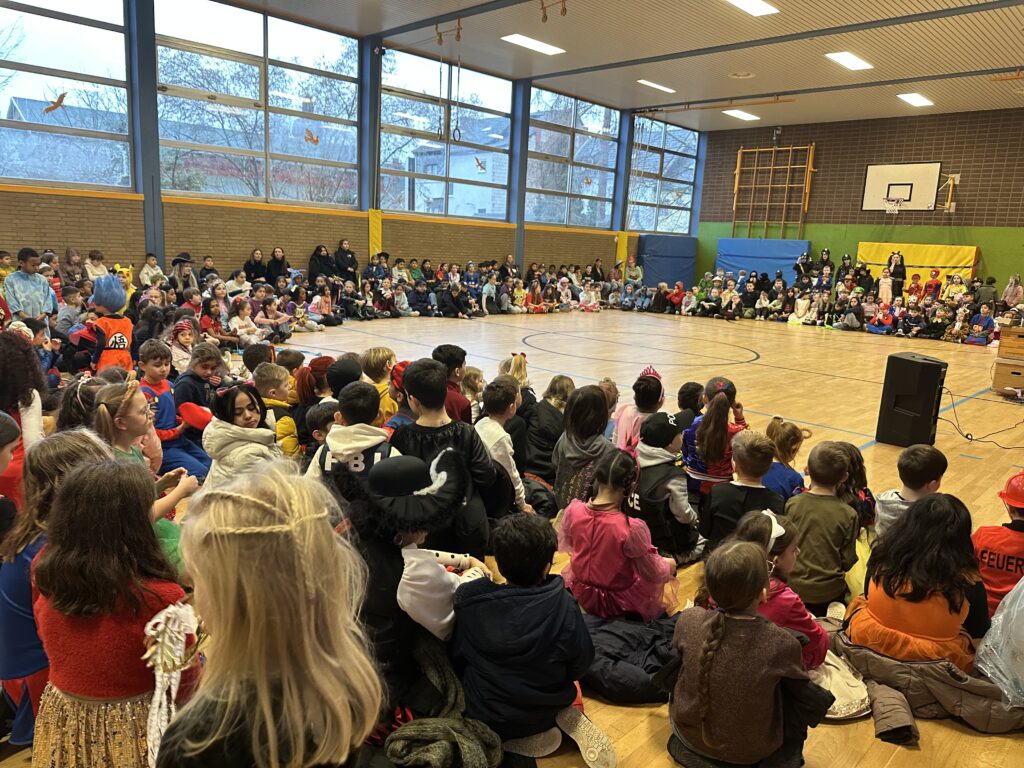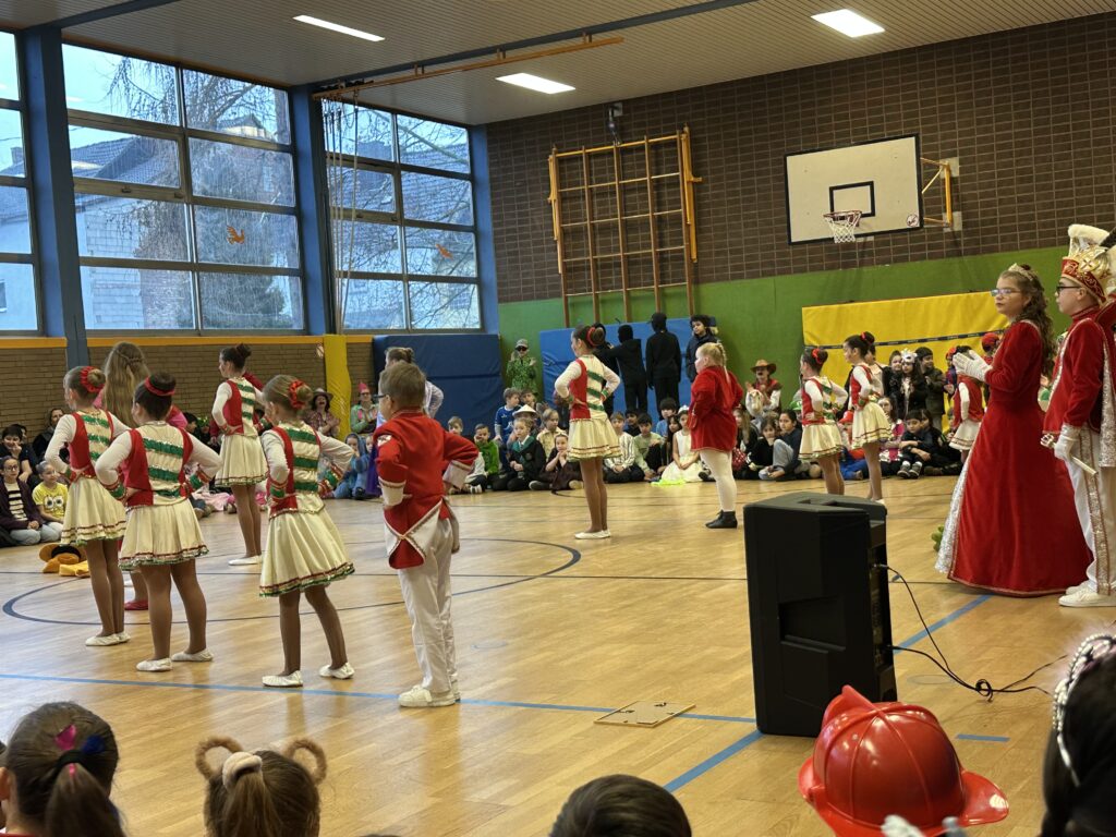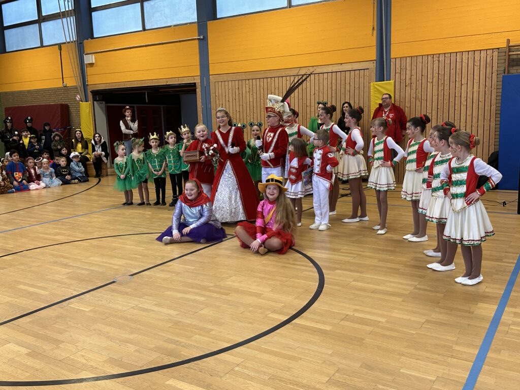 Auch in diesem Jahr ging es am Mittwoch vor Schwerdonnerstag närrisch zu in der WGS. Verkleidete Kinder und Erwachsene feierten in den Klassen und der Turnhalle nach rheinischem Brauchtum. Das Kinderprinzenpaar mit Gefolge und den Rheinsternchen samt Solomariechem gaben den Auftakt zur großen Feier in der Halle, gefolgt von vielen tollen Tanzdarbietungen aus den Klassen und wie es Tradition ist: dem Tanz Lehrkräfte. Nach einer Stärkung in den Klassen, folgte der Besuch der erwachsenen Tollitäten aus Koblenz: Prinz und Confluentia mit Gefolge.