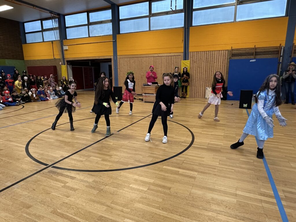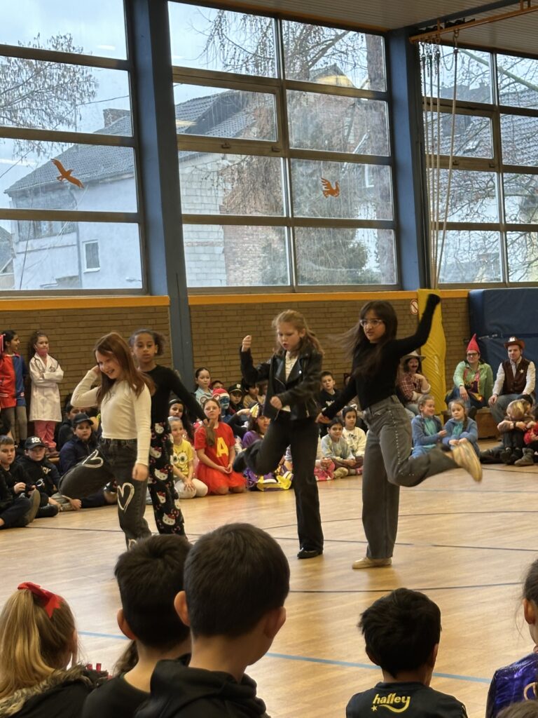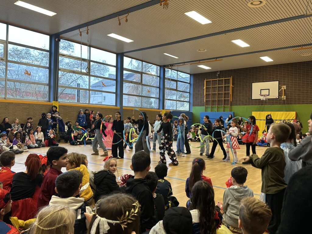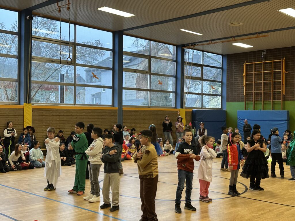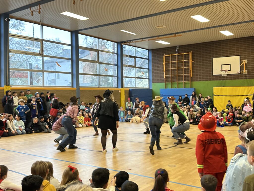 Auch in diesem Jahr ging es am Mittwoch vor Schwerdonnerstag närrisch zu in der WGS. Verkleidete Kinder und Erwachsene feierten in den Klassen und der Turnhalle nach rheinischem Brauchtum. Das Kinderprinzenpaar mit Gefolge und den Rheinsternchen samt Solomariechem gaben den Auftakt zur großen Feier in der Halle, gefolgt von vielen tollen Tanzdarbietungen aus den Klassen und wie es Tradition ist: dem Tanz Lehrkräfte. Nach einer Stärkung in den Klassen, folgte der Besuch der erwachsenen Tollitäten aus Koblenz: Prinz und Confluentia mit Gefolge.