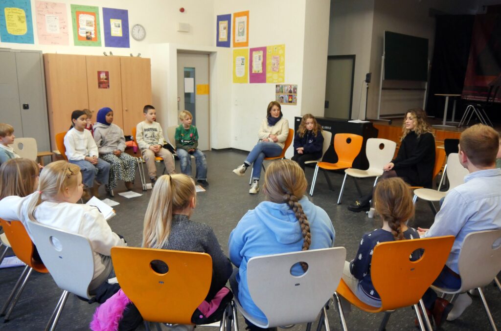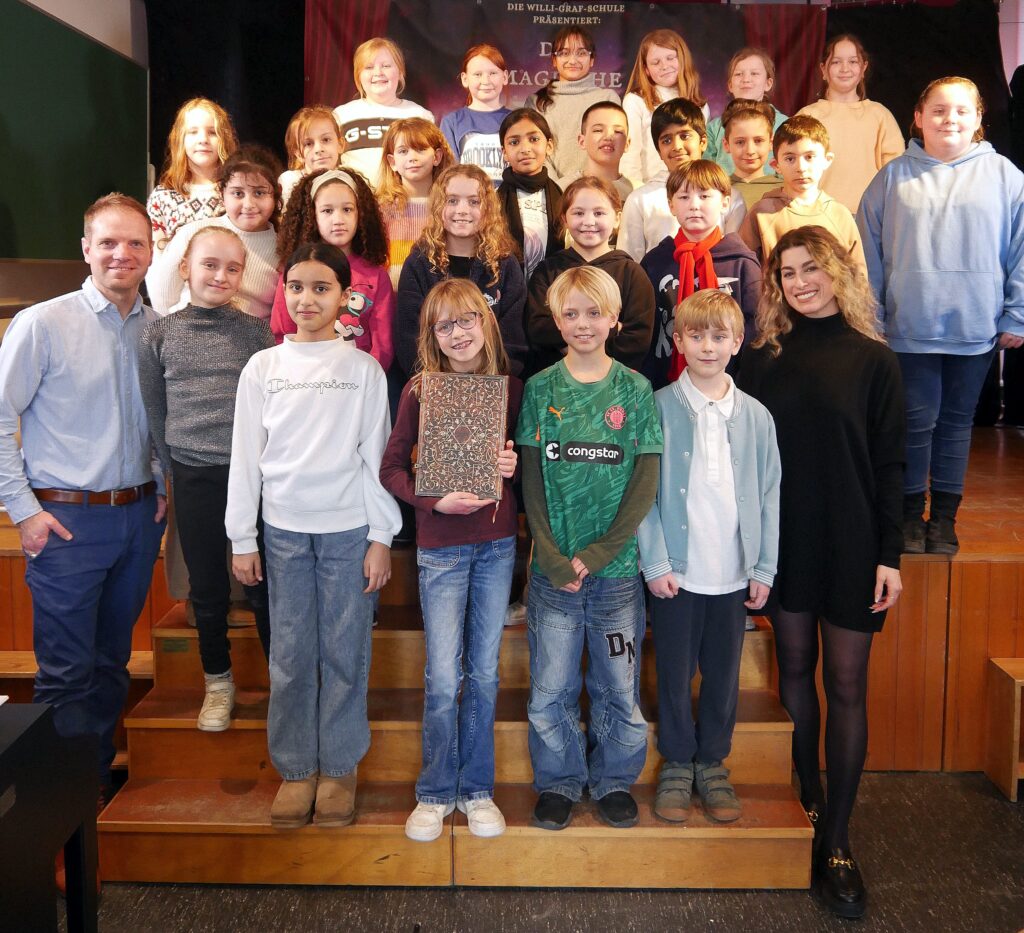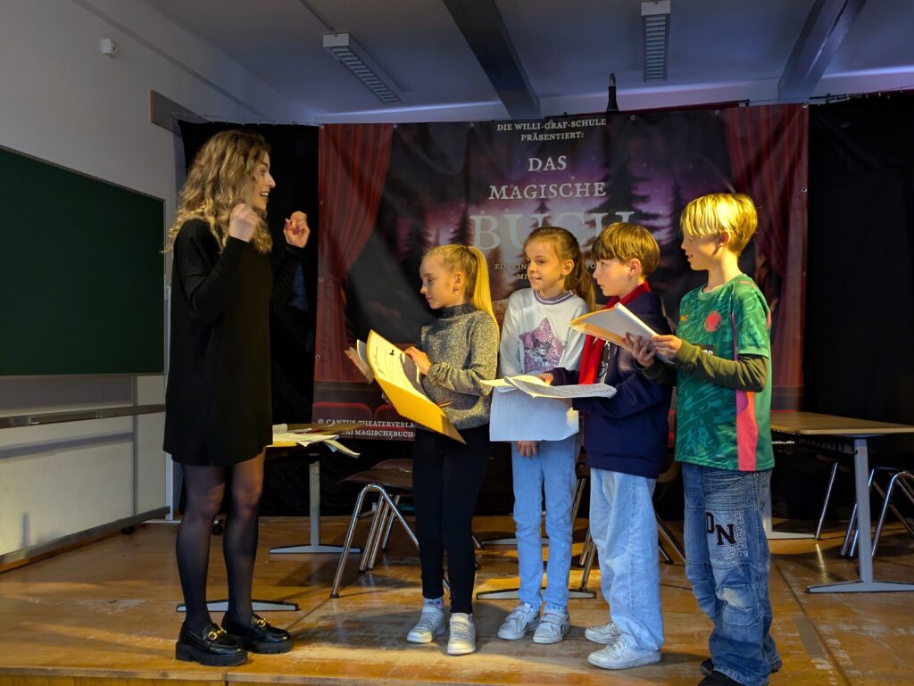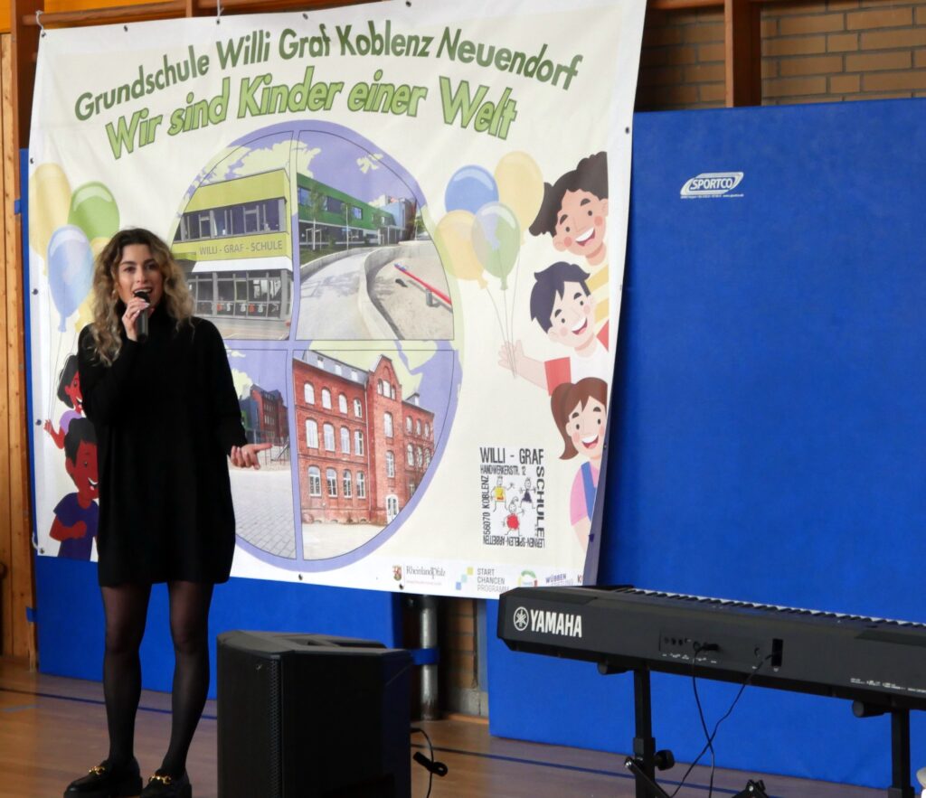 Einen ganz besonderen Tag erlebten unsere Kinder am Dienstag, 24.02.26, denn die Sängerin und Musicaldarstellerin Ann Sophie hatte der Willi-Graf-Schule einen Besuch abgestattet wie auch TV-Mittelrhein, RPR1 und Blick aktuell berichten. In einer Fragerunde im Theaterraum gab sie interessante Einblicke in ihr musikalisches Leben und erzählte, dass sie zuletzt mehr als 200 Aufführungen als Elsa im Musical „Die Eiskönigin“ in Stuttgart spielte. Im anschließenden Workshop gab sie Tipps an die jungen Schauspieltalente weiter, die sich derzeit auf die Aufführungen des Musicals „Das magische Buch“ vorbereiten. Die Kinder spielten eine Szene aus dem Musical und sangen Lieder aus dem Musical vor. Danach erlebten dann alle Klassen in der Turnhalle einen emotionalen Moment, als Ann Sophie die deutsche Version des Liedes „Let It Go“ sang. Zum Abschluss gaben die Schauspielkinder und der Musicalchor vor eingeladenen PressevertreterInnen noch einen kleinen Einblick in das Musical, auf das sich die gesamte Schulgemeinschaft schon sehr freut.