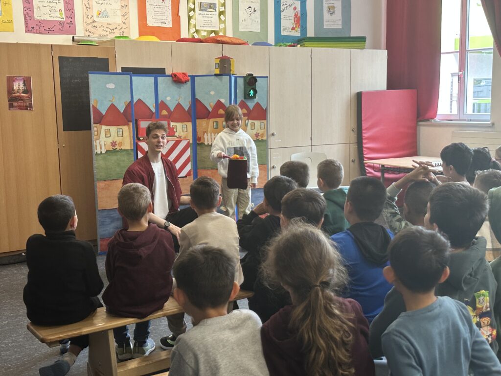 Doch die Aufführung bot nicht nur Unterhaltung, sondern hatte auch einen hohen Lernwert. Die Schülerinnen und Schüler erfuhren auf anschauliche Weise, wie sie sich zu Fuß sicher im Straßenverkehr verhalten. Dabei bezog der Verkehrsmagier die Kinder immer wieder aktiv mit ein und vermittelte ihnen – ergänzend zum Unterricht – wichtige Grundlagen der Verkehrserziehung auf spielerische Art. Themen waren die Überquerung von Straßen an Ampeln, Zebrastreifen oder sonstigen Orten sowie korrekte Sitzplätze für Kinder und Anschnallpflicht in Autos. So wurde die Show zu einem besonderen Erlebnis für alle Beteiligten, das sicherlich noch lange in Erinnerung bleibt.