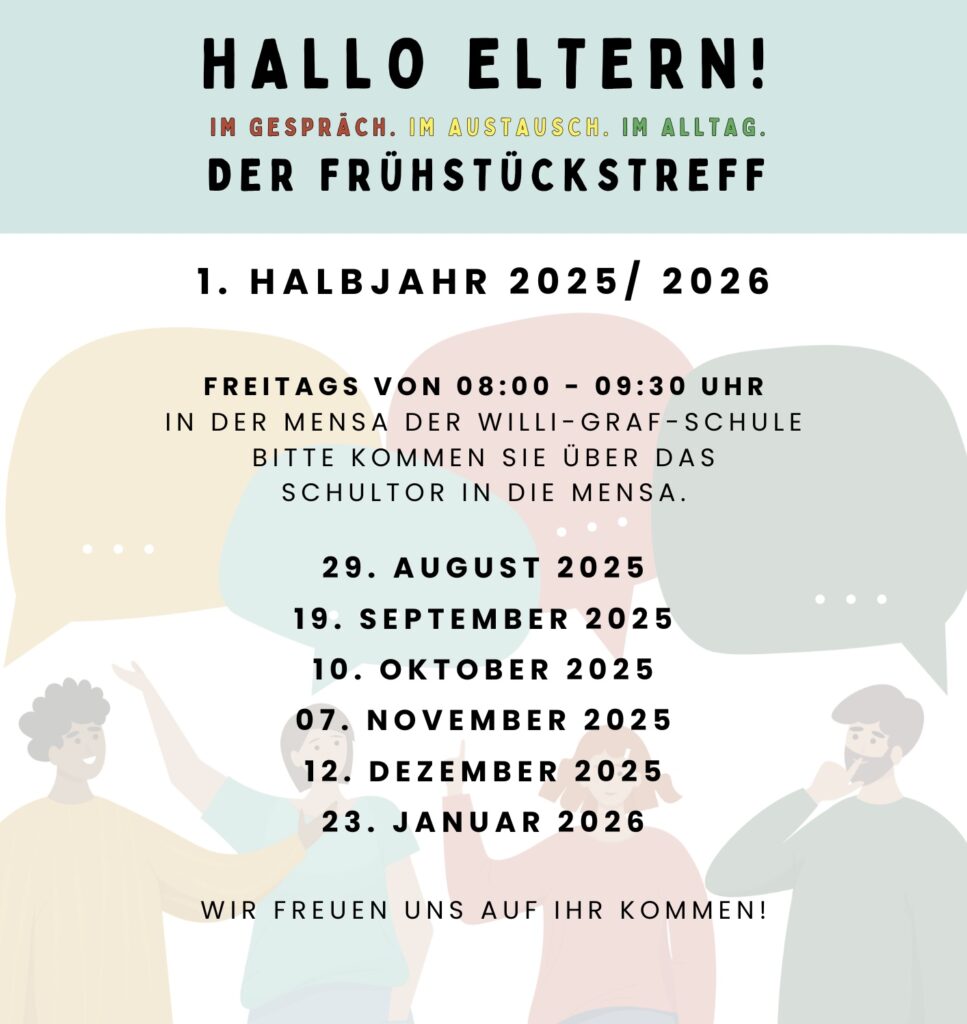 Bei einer Tasse Kaffee oder Tee und einem kleinen Snack gibt es die Möglichkeit zum Austausch mit anderen Eltern, mit der Schulsozialarbeit, der Caritas oder einfach zum entspannten Start in den Tag.