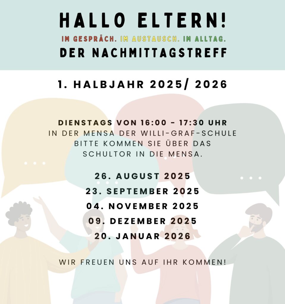 In diesem Schuljahr gibt es eine kleine, aber wichtige Änderung: Das bisherige Elterncafé freitags von 11:00 bis 13:00 Uhr wird nicht mehr in dieser Form stattfinden. Einige Eltern haben uns zurückgemeldet, dass diese Uhrzeit schwer mit dem Alltag zu vereinbaren ist – das haben wir gehört und nehmen es ernst. Deshalb laden wir Sie ab sofort herzlich ein zum: